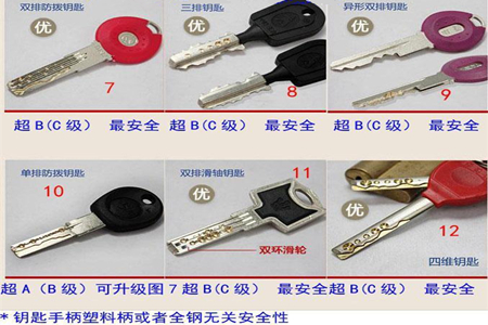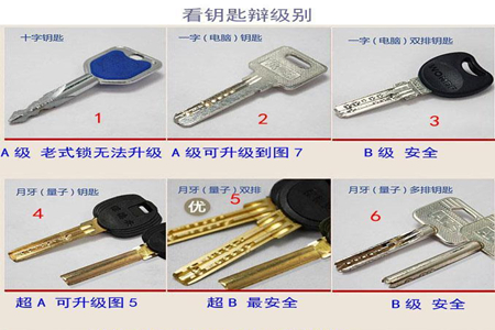 那么下面請看鑰匙辨別門鎖的級別(圖)