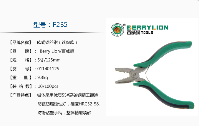 鋼絲鉗的種類很多,市場(chǎng)上的鋼絲鉗一般分中和高兩個(gè)檔次,所謂檔次的劃分不是因?yàn)槠滟|(zhì)量的好壞問題,而在于制造鋼絲鉗的材質(zhì)問題造成的檔次不同。一般鋼絲鉗可以用鉻釩鋼、鎳鉻鋼、高碳鋼和球墨鑄鐵4種材料制作。鉻釩鋼和鎳鉻鋼的硬度高,質(zhì)量好,一般用這種材質(zhì)制造的鋼絲鉗可列為高檔次鋼絲鉗,高碳鋼的相對(duì)就是檔次低了點(diǎn),球墨鑄鐵做的鋼絲鉗質(zhì)量最次,價(jià)格最便宜。