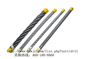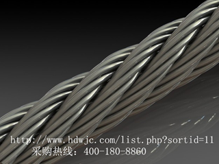 由若干細(xì)鋼絲圍繞一根金屬芯擰制而成,撓性差,反復(fù)彎曲時(shí)易磨損折斷,主要用作不運(yùn)動(dòng)的拉緊索。