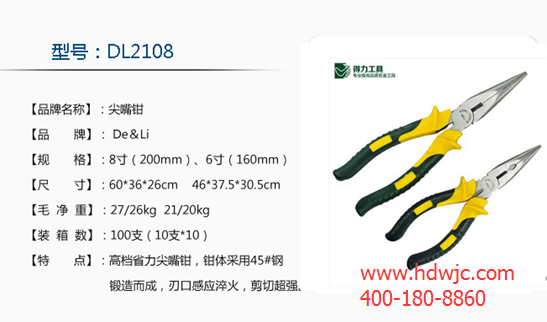 尖嘴鉗又稱修口鉗、尖頭鉗、尖咀鉗同,它是由尖頭、刀口和鉗柄組成,電工用尖嘴鉗的 材質(zhì)一般由45#鋼制作,類別為中碳鋼。含碳量0.45%,韌性硬度都合適。目前華東五金網(wǎng)已有賣尖嘴鉗品牌十多家商戶,像得力、世達(dá)、百獅威等等,各式尖嘴鉗應(yīng)有盡有。
