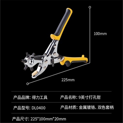 寧波得力DL0400-9打孔鉗40鉻雙色套柄打孔器皮帶打孔工具泰州市紅旗五金交電有限公司