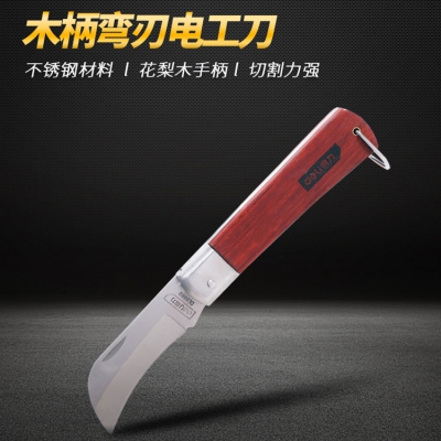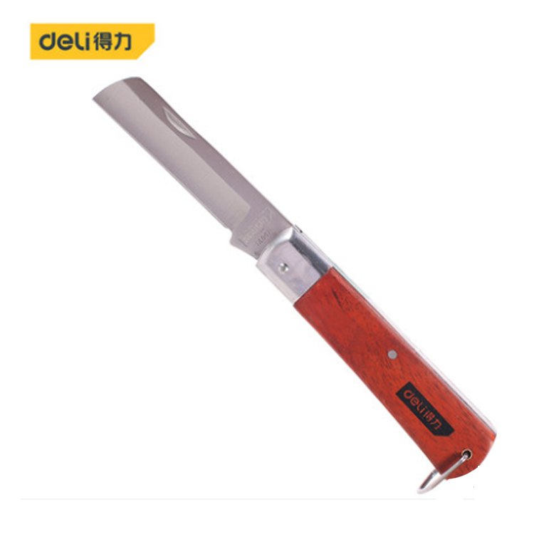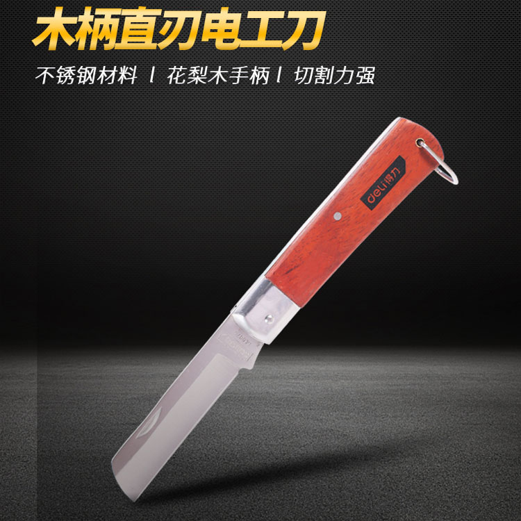 得力電工刀DL0060木柄絕緣直刃彎刃電纜刀電線剝線剝皮折疊泰州市紅旗五金交電有限公司