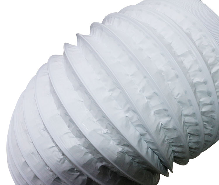 PVC鋁箔復(fù)合伸縮軟管可以任意彎曲,沒(méi)有硬性彎頭,可減少風(fēng)阻,一體成型,減少漏風(fēng)量。