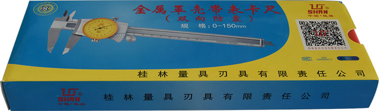 桂林牌帶表卡尺高精度不銹鋼游標(biāo)卡尺雙向防震尾部