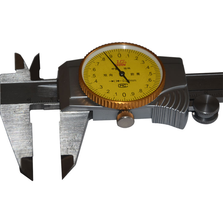 桂林牌帶表卡尺高精度不銹鋼游標(biāo)卡尺雙向防震滾輪設(shè)計(jì)
