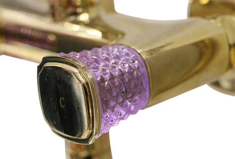沐浴器花灑設計元素源于馬蹄蓮花線條與色彩典雅的紫色琉璃把手