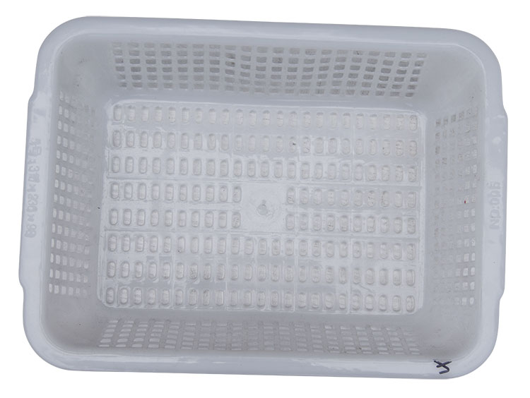 白色塑料筐底部采用正方形方格設(shè)計(jì),同時(shí)加強(qiáng)骨架??茖W(xué)的防滑設(shè)計(jì),