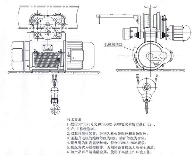 冶金電動葫蘆介紹:SZCD、SZMD型系列冶金葫蘆,在主機總體設計、第二制動器、電機的設計