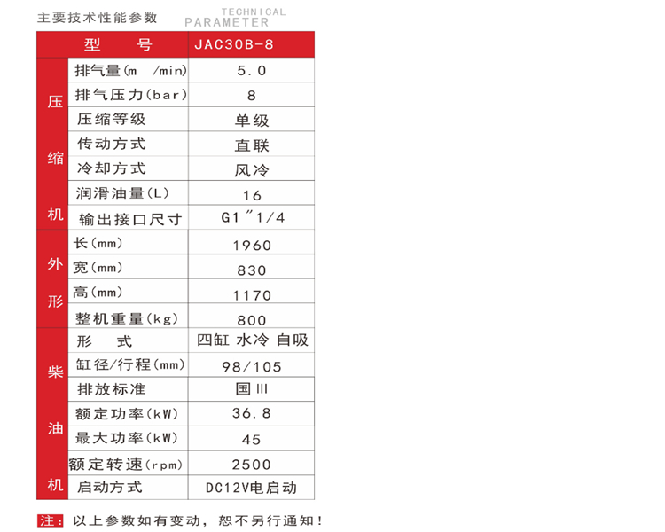紅五環(huán) JAC柴動(dòng)系列工程專用螺桿空壓機(jī)