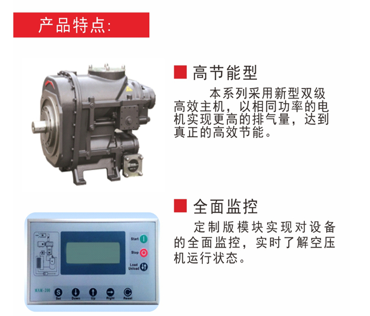 本系列螺桿空氣壓縮機(jī)采用新型兩級壓縮主機(jī),
