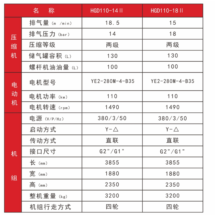 紅五環(huán)?電驅(qū)HGD132Ⅱ?兩級壓縮系列?電移空壓機(jī)