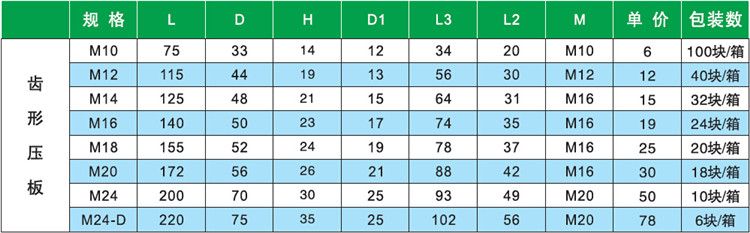 超硬鍛打齒形壓板模具機(jī)床壓板參數(shù)