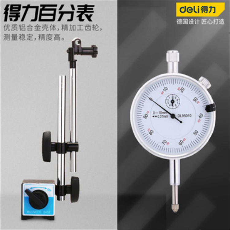 得力百分表0-10mm測量時,不要使測量桿的行程超過它的測量范圍,不要使表頭突然撞到工件上,也不要用百分表測量表面粗糙度或有顯著凹凸不平的工作。