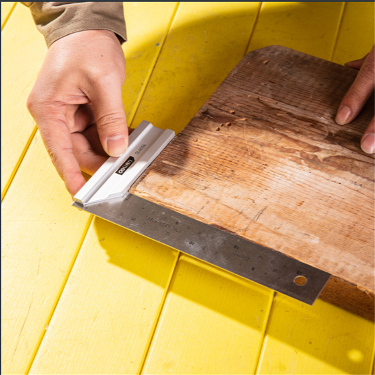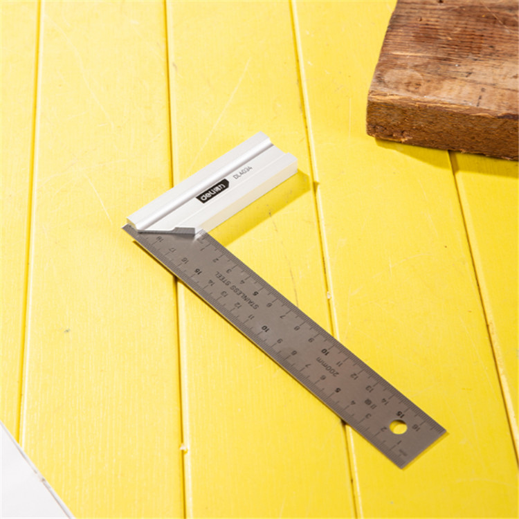 得力不銹鋼多功能水平直角尺角使用時(shí),將直角尺靠放在被測工件的工作面上,用光隙法鑒別工件的角度是否正確。注意輕拿、輕靠、輕放,防止變曲變形。