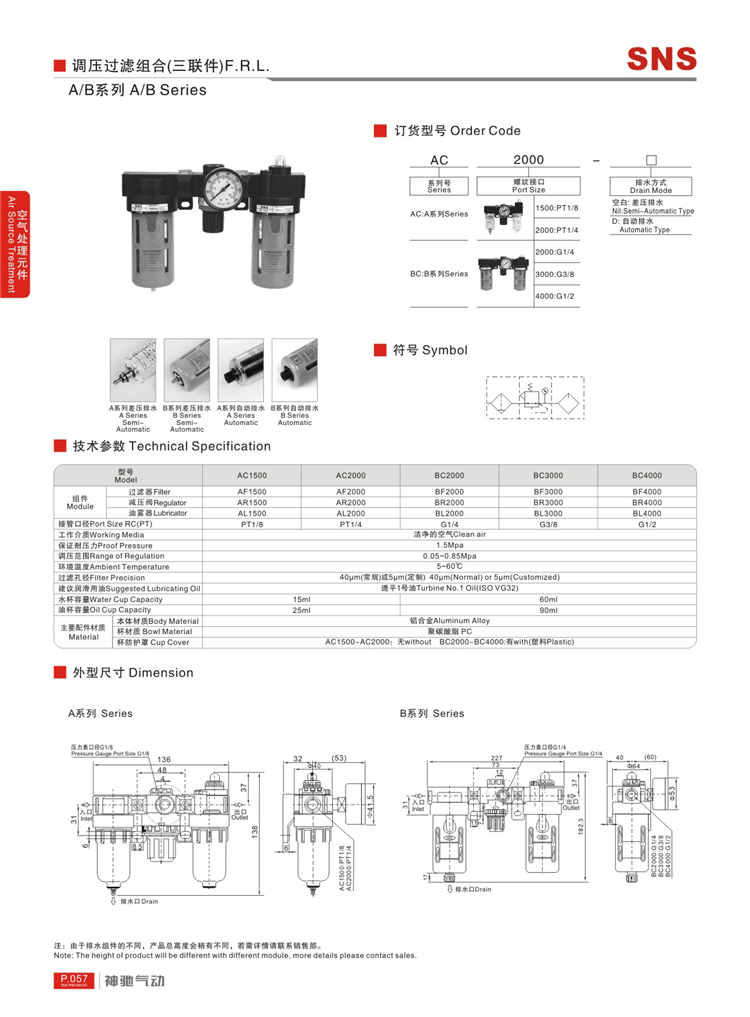 A/B系列調(diào)壓過濾組合(三聯(lián)件)技術(shù)參數(shù)
