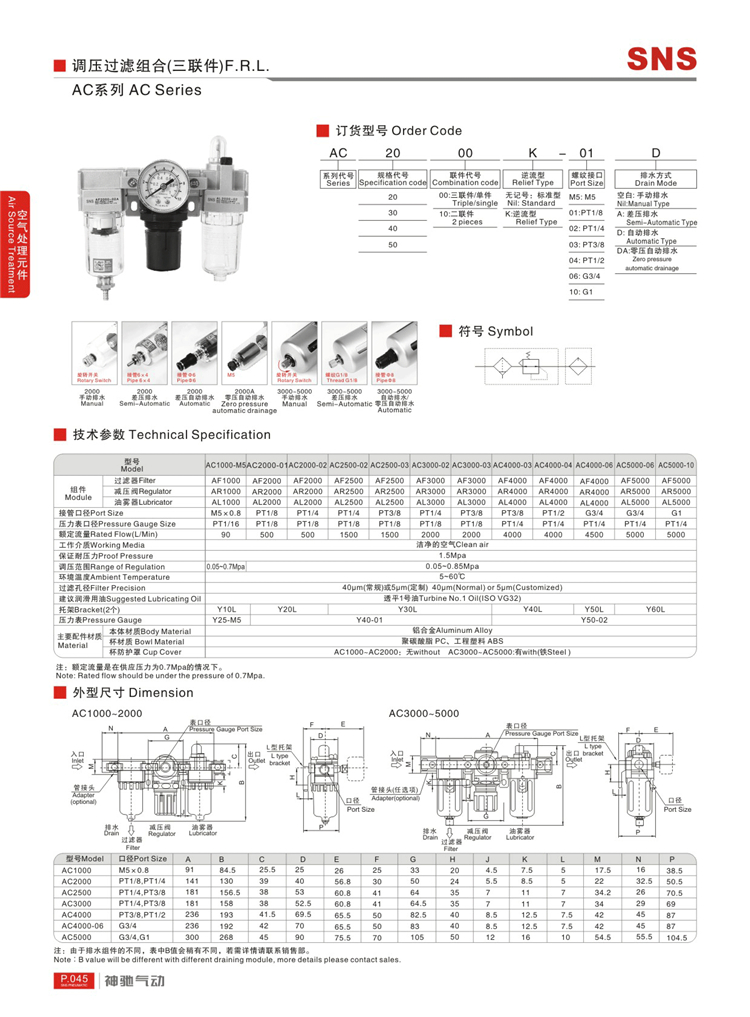 AC系列調(diào)壓過(guò)濾組合三聯(lián)件技術(shù)參數(shù)
