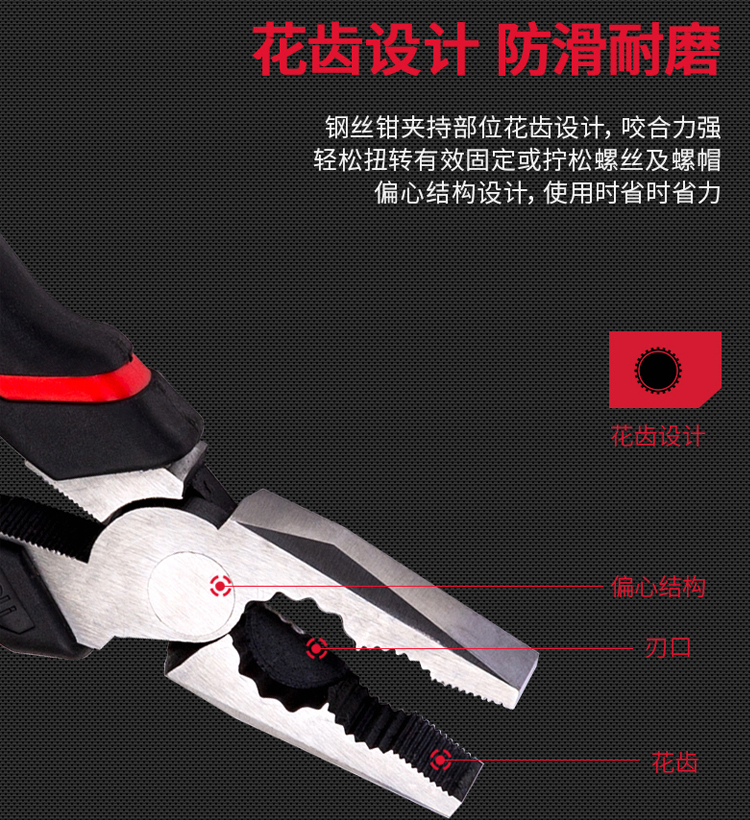 鋼絲鉗夾持部位花齒設(shè)計(jì),咬合力強(qiáng)