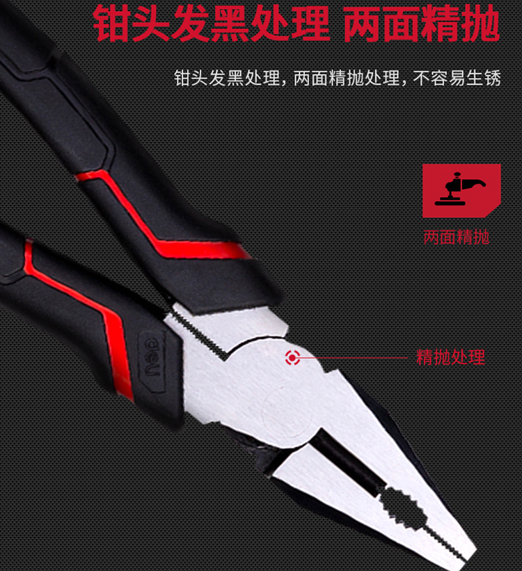鋼絲鉗鉗頭發(fā)黑處理,兩面精拋處理,不容易生銹