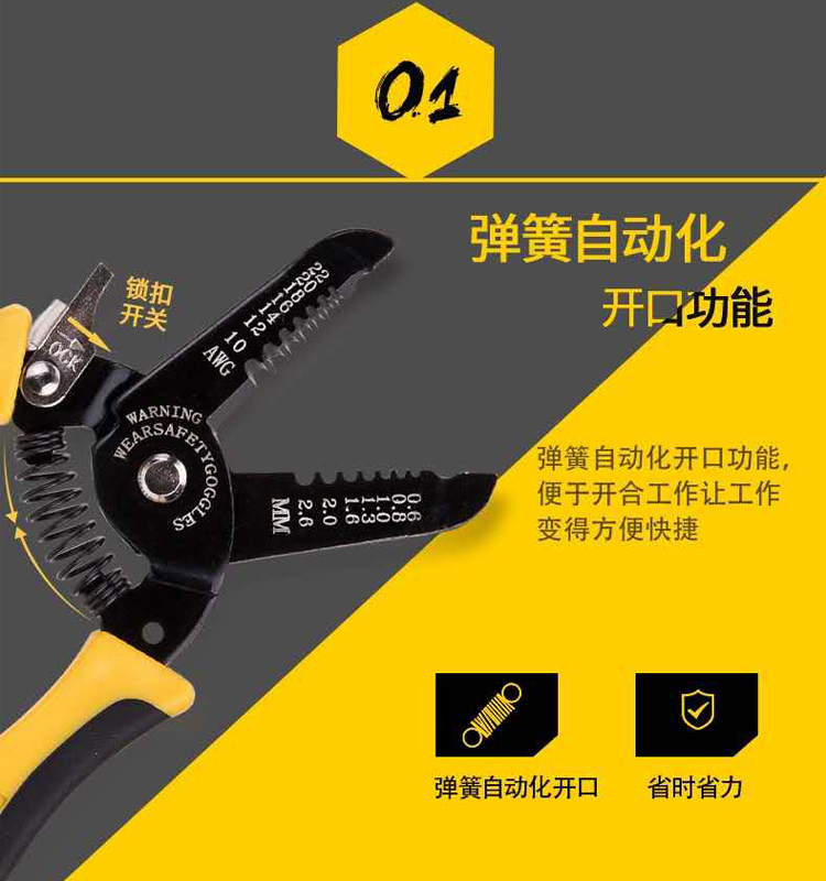 剝線鉗彈簧自動(dòng)化開(kāi)口功能,便于開(kāi)合工作讓工作變得方便快捷