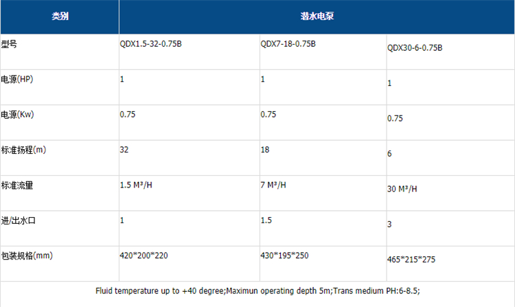 大元潛水電泵(750B)技術(shù)參數(shù)