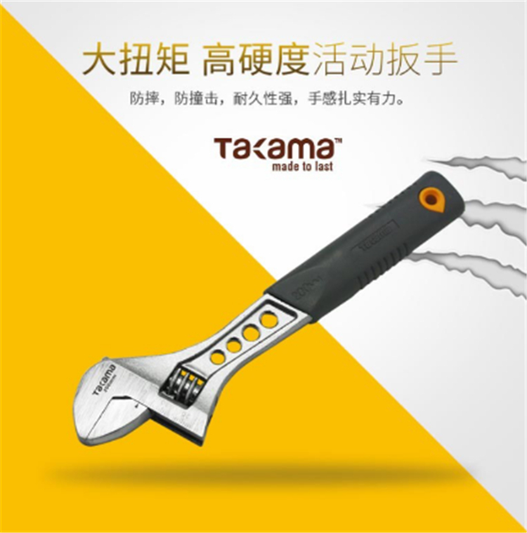 Takama(高松)活動扳手大扭矩,高硬高活動扳手,防摔,防撞擊,耐久性強,手感扎實有力。