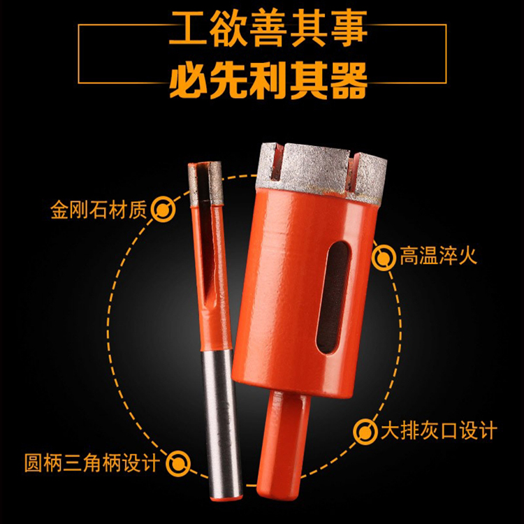 大理石開(kāi)孔器采用優(yōu)質(zhì)金剛石為主原料,開(kāi)孔性能更加強(qiáng)勁,鉆體高溫淬火,更加耐用。