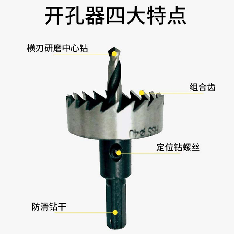 高速鋼開孔器三棱桿設(shè)計,有效防止鉆孔過程中打滑,適用于各種電鉆。