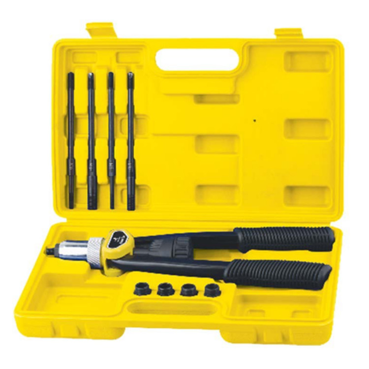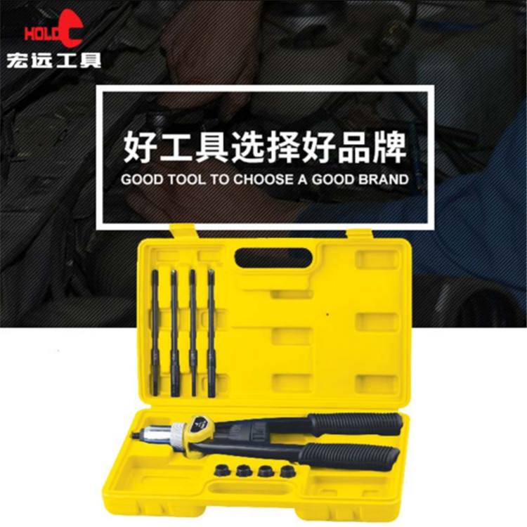 宏遠(yuǎn)雙把重型螺母拉鉚槍為解決金屬薄板、薄管焊接螺母易熔,攻內(nèi)螺紋易滑牙等缺點(diǎn)而開發(fā),它可鉚接不需要攻內(nèi)螺紋,
