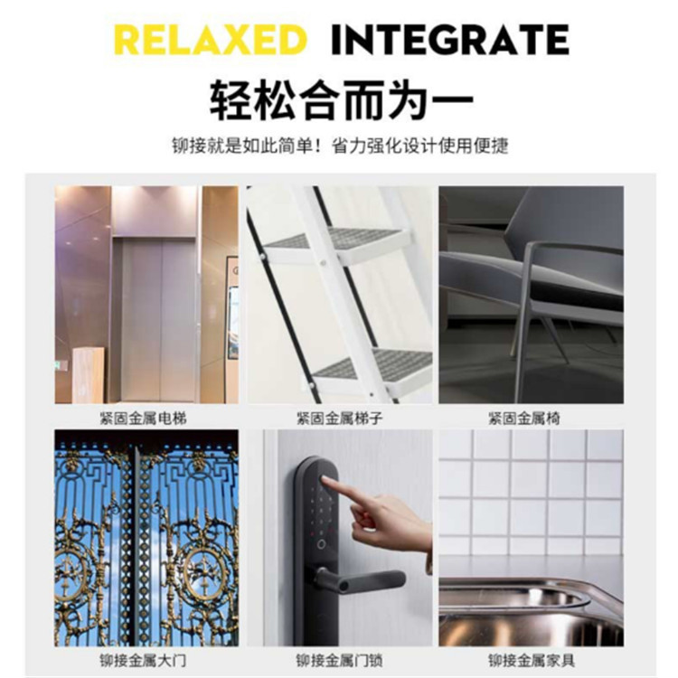 宏遠(yuǎn)雙把拉鉚槍使用氣動(dòng)或手動(dòng)拉鉚槍可一次鉚固,方便牢固;取代傳統(tǒng)的焊接螺母,彌補(bǔ)金屬薄板,薄管焊接易熔,焊接螺母不順等不足。