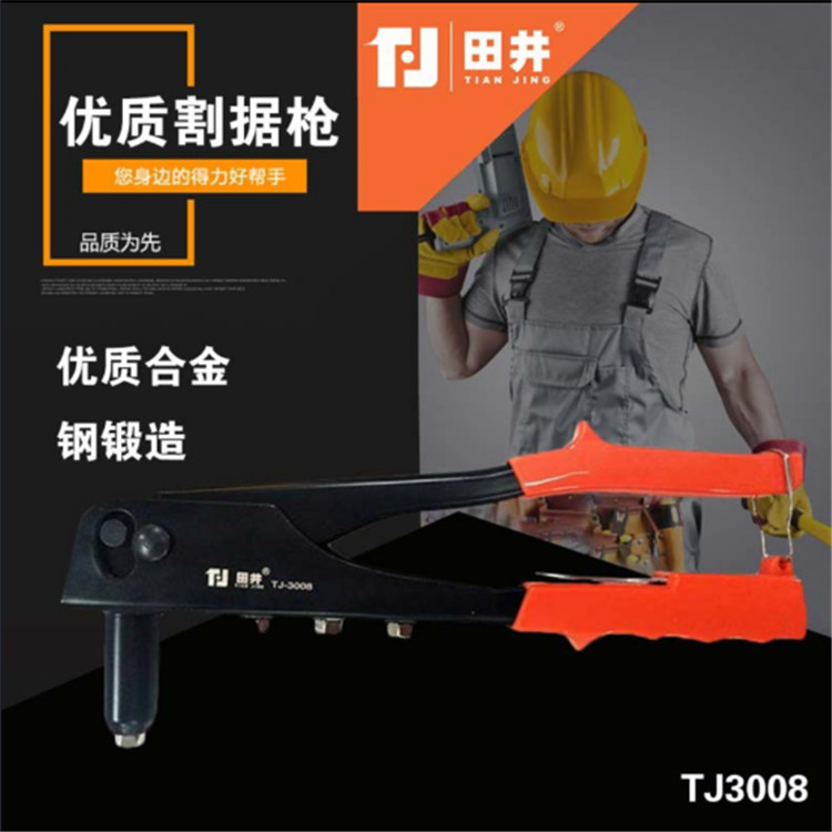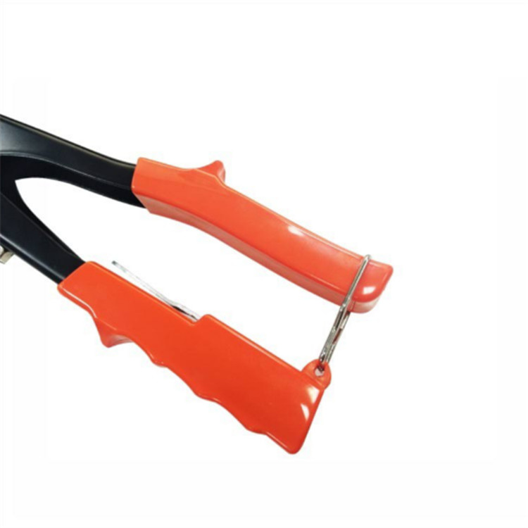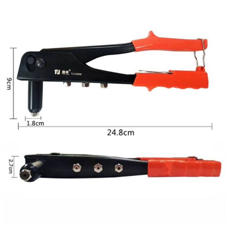 正豐10寸拉鉚槍如果某一產品的螺母需裝在外面,而里面空間狹小,無法讓亞鉚機的壓頭進入進行壓鉚且抽芽等方法無法達到強度要求的時候,這時壓鉚和漲鉚都不可行。