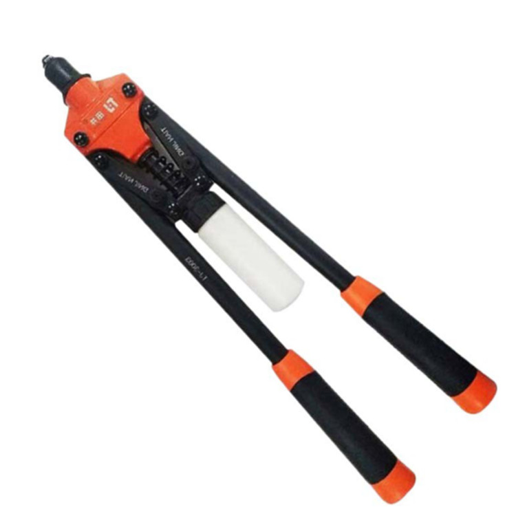 正豐10寸拉鉚槍如果某一產(chǎn)品的螺母需裝在外面,而里面空間狹小,無法讓亞鉚機的壓頭進入進行壓鉚且抽芽等方法無法達到強度要求的時候,這時壓鉚和漲鉚都不可行。