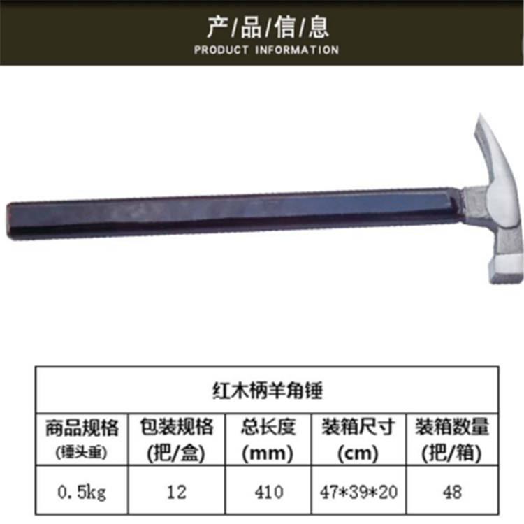 浩祥紅木柄羊角錘優(yōu)質(zhì)高碳鋼一體鍛造,高溫淬火,韌性強(qiáng)硬度高,一體成型更安全。