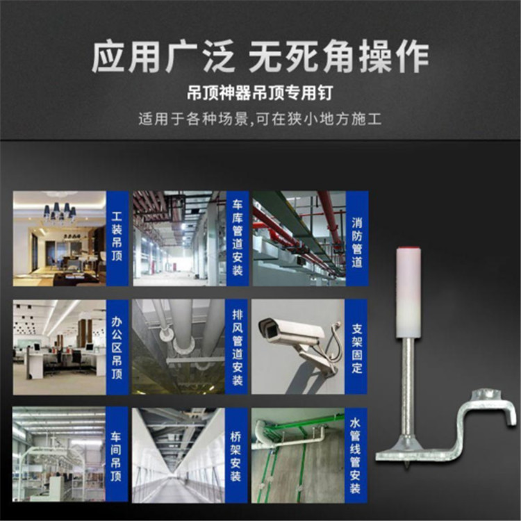 鴻泰M8吊頂釘應用廣泛,無死角操作,適用于各種場景,可在狹小的地方施工。