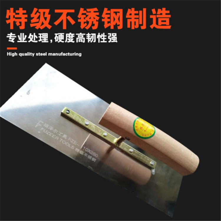 福澤爾不銹鋼抹子木質(zhì)把手握感舒適,連接一體握柄,便于發(fā)力,使用輕松無壓力。