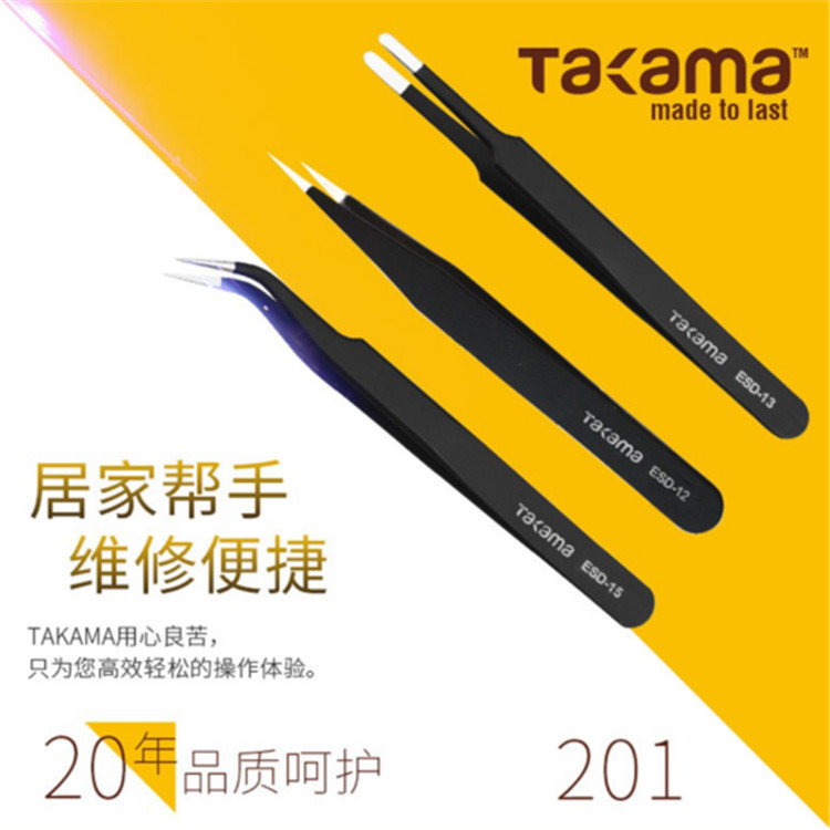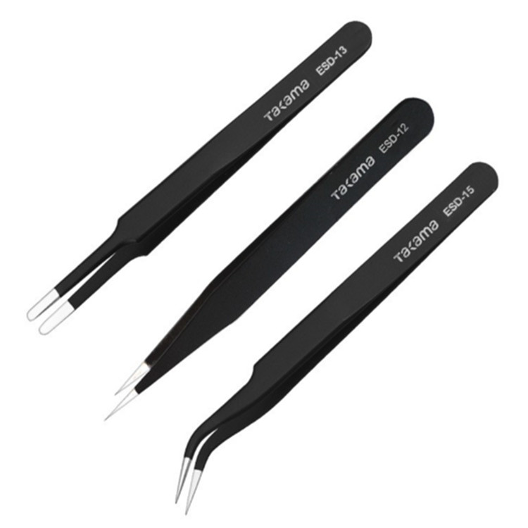 Takama(高松)鑷子套裝3件套是由特殊導(dǎo)電塑膠材料制成的,具有彈性良好,使用輕便和泄放靜電的特性,適用于對(duì)靜電敏感的元器件加工和安裝。