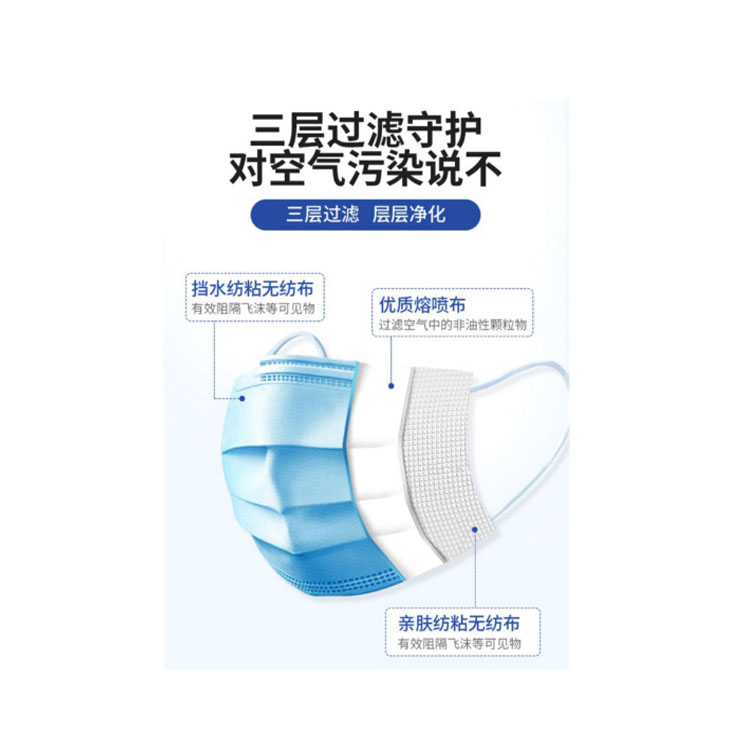林盾平面一次性口罩藍(lán)色親膚紡粘無(wú)紡布有效阻隔飛沫等可見(jiàn)物