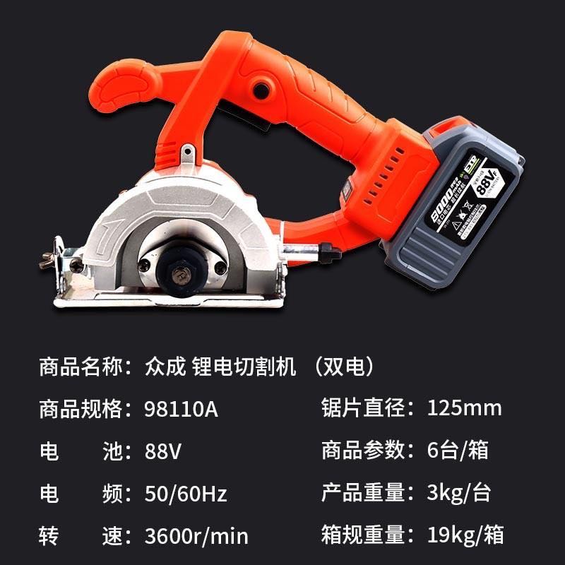 眾成 88V 鋰電石材切割機(jī)(雙電)125mm