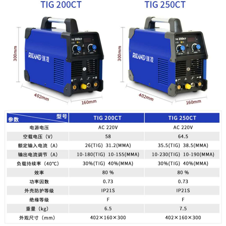 瑞凌TIG-200/250CT家用電焊機小型便攜逆變直流氬弧焊兩用220V