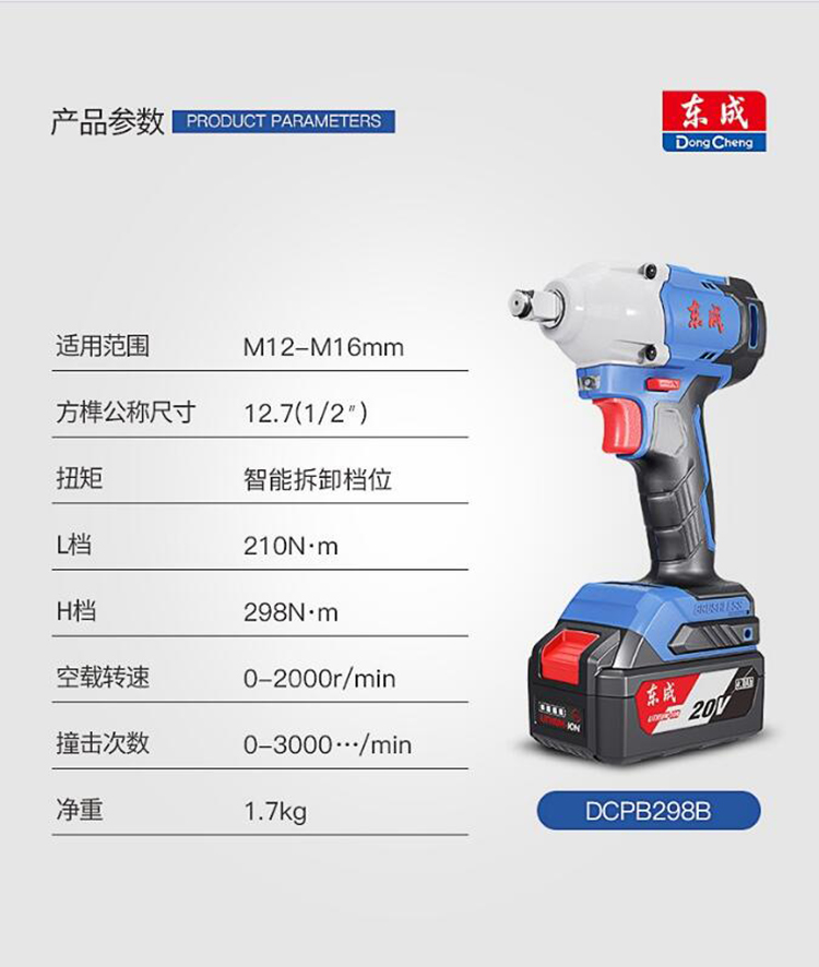 鋰電沖擊扳手20V架子工充電電扳手 DCPB298B相關(guān)參數(shù)
