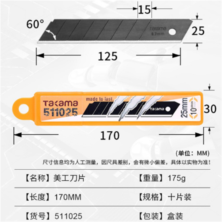 Takama(高松)25mm美工刀十片裝型號規(guī)格展示
