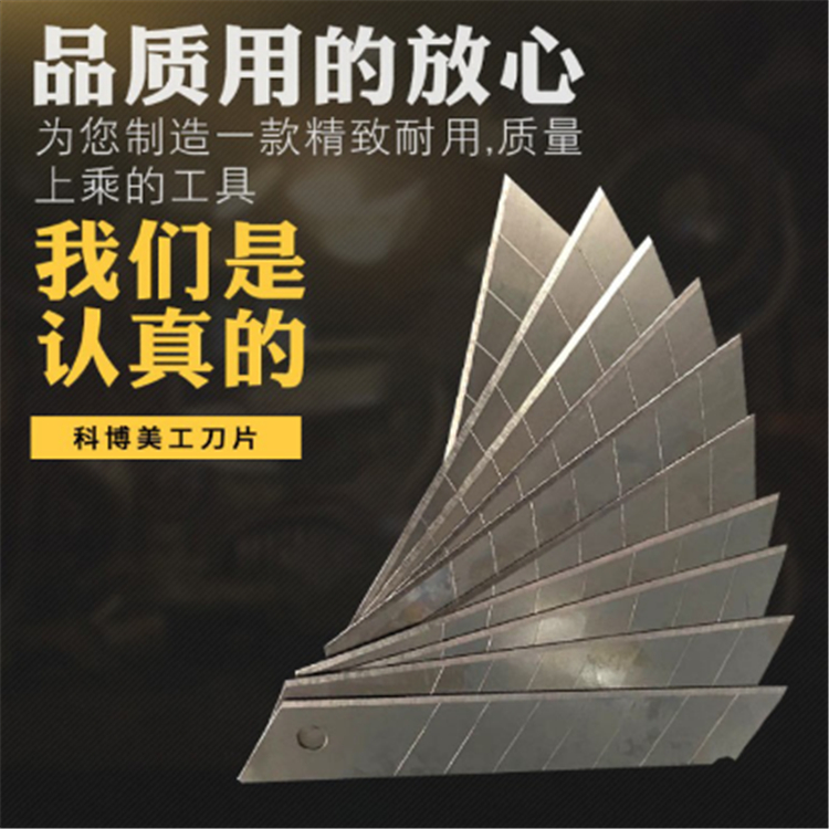 科博18mm美工刀片厚度0.5mm采用75#鋼材,合金刀片,鋒利結實。刀尖鋒利,切割精準,提高工作效率。