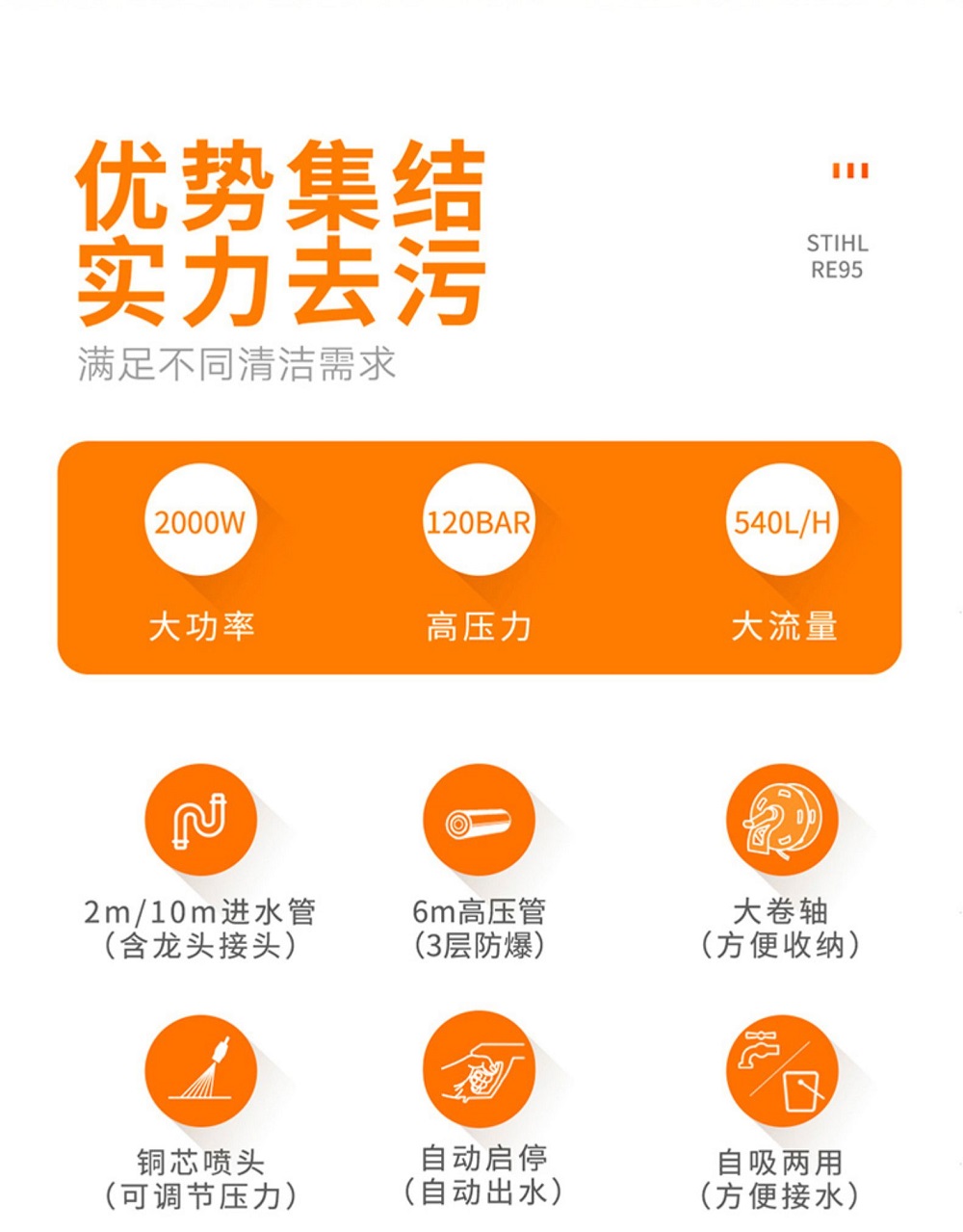 德國斯蒂爾STIHL家用便攜式洗車機 大功率自動高壓清洗水槍泵RE95