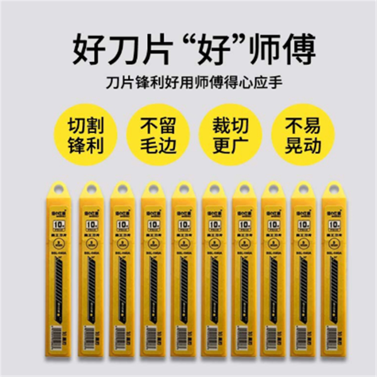 佰仕利BSL-H40A厚度0.4mm美工刀片優(yōu)質(zhì)高碳鋼,采用SK5鍛造,韌性強(qiáng),更鋒利,防腐防銹,卓越品質(zhì),持