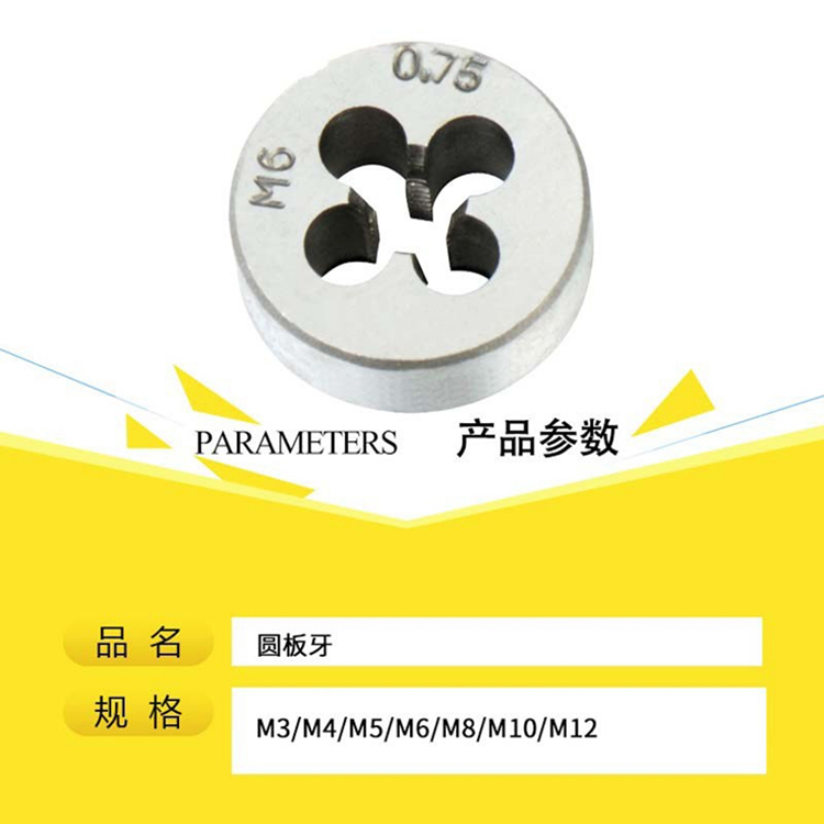 圓板牙整體淬火,超高硬度,耐用性強,切削能力強,排屑流暢。