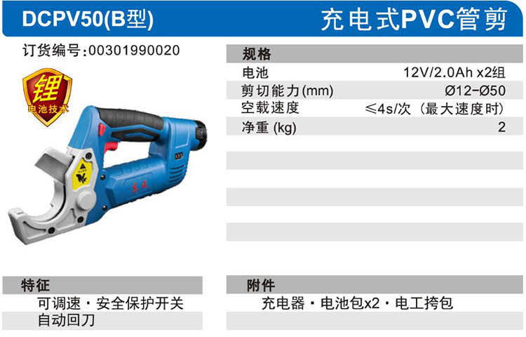 東成充電式PVC管剪DCPV50(B型)詳細(xì)參數(shù)。
