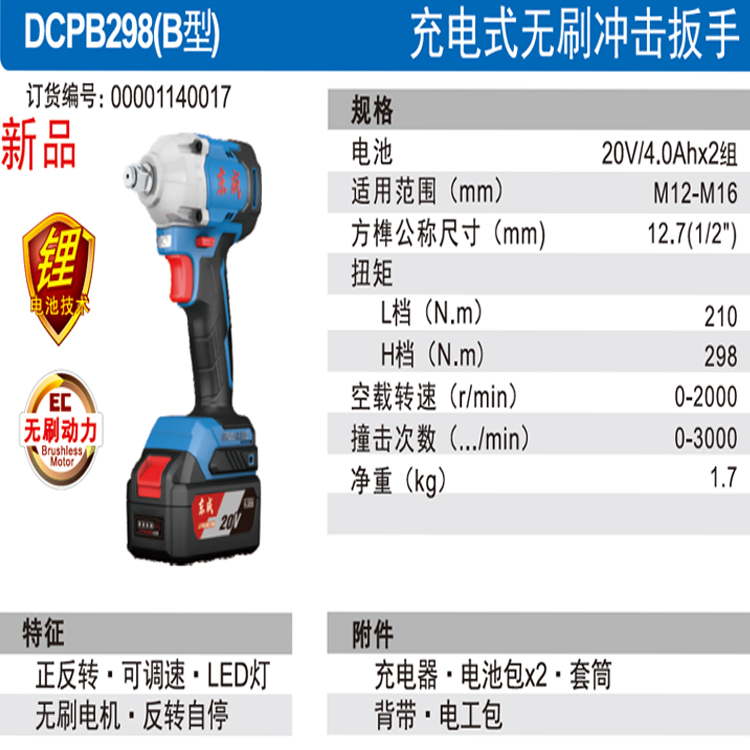 風炮充電式無刷沖擊扳手DCPB298(B型)