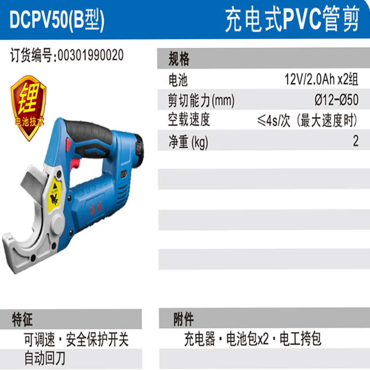 東成充電式管子割刀快剪pvc管剪刀PVC管子剪刀切管刀DCPV50B型