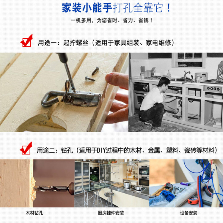 電鉆主要為木工開孔用,在金屬(非鐵類)上打孔也是非常理想的,比如說鋁合金安裝