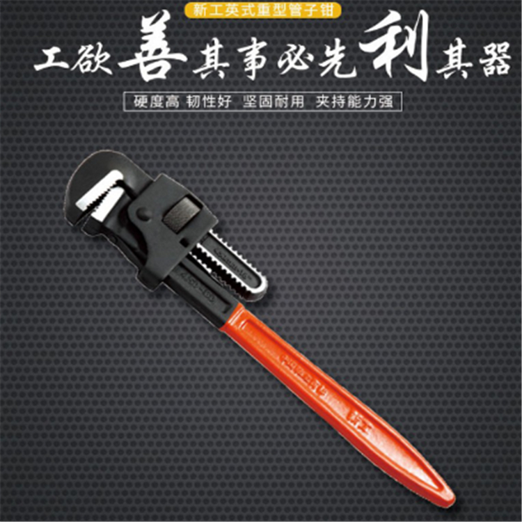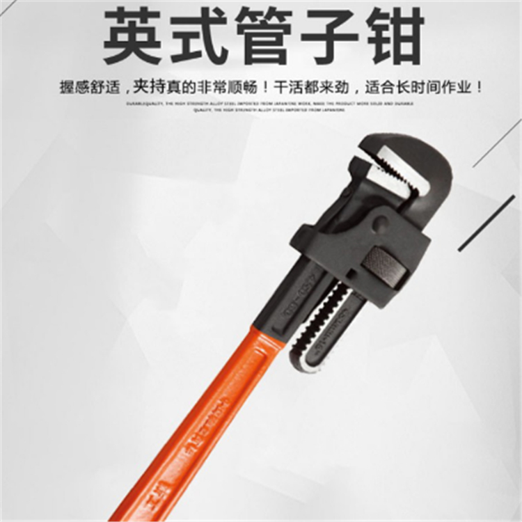 新工英式管子鉗防滑手柄,符合人體工程學(xué)原理,握感舒適,夾持順暢,干活得力,