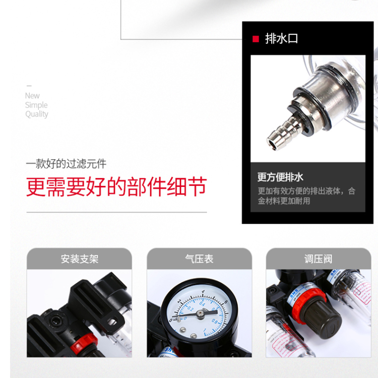 SNS神馳氣動(dòng)氣源處理器采用合金材料,更加耐用。